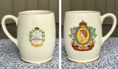 Later in the day we were paraded down to Lypiatt Army Camp to watch a recording of the proceedings from earlier in the day. Being interested in technical things I clearly remember the large slightly fuzzy black and white picture being projected onto a screen. I still find it amazing that back then they had projector televisions, it must have been very new technology then. As for the mug, I still have it some 70 years later.