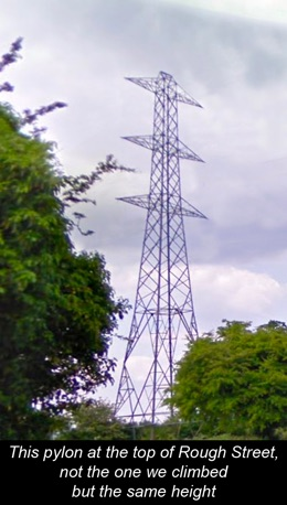 In the mid 50’s new electricity pylons began to appear across the fields in a line south of the Ridge heading to the top of Rough Street and onwards. Pylon after pylon, giant metal structures standing starkly against the sky waiting for the wires to be attached. They stood like that for a few years.